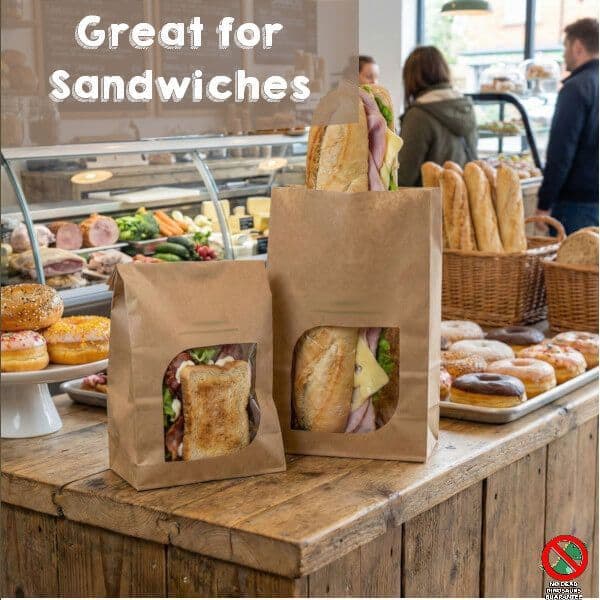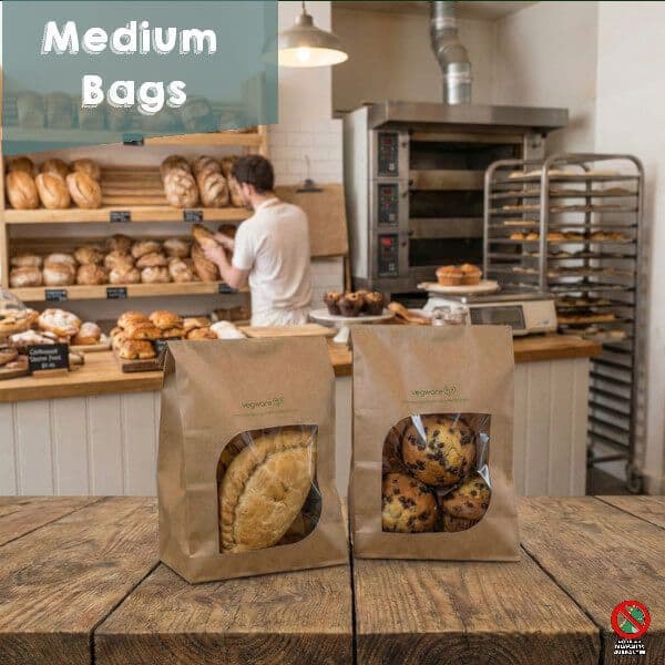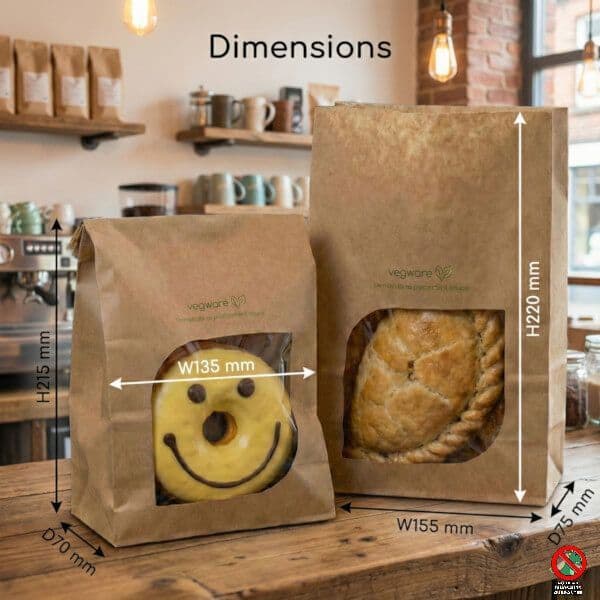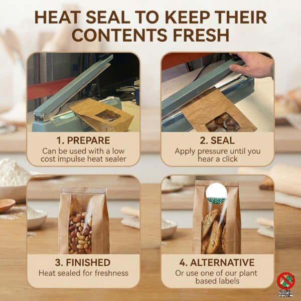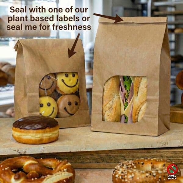 Crafted from high-quality Kraft paper and featuring a crystal-clear NatureFlex™ window, these bags provide maximum visibility for your fresh creations. Unlike traditional plastic windows, NatureFlex™ is made from renewable wood pulp, meaning the entire bag is 100% compostable and biodegradable.