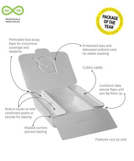 The patented Folia™ line was designed to completely redefine the take-out and leftover experience. Innovative features include tear-away flaps for easier access to food, leak resistant side flaps that prevent spills and hold condiments and cutlery, and a full array of shapes and sizes that satisfy a broad scope of foodservice needs.