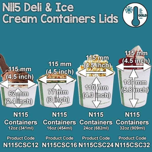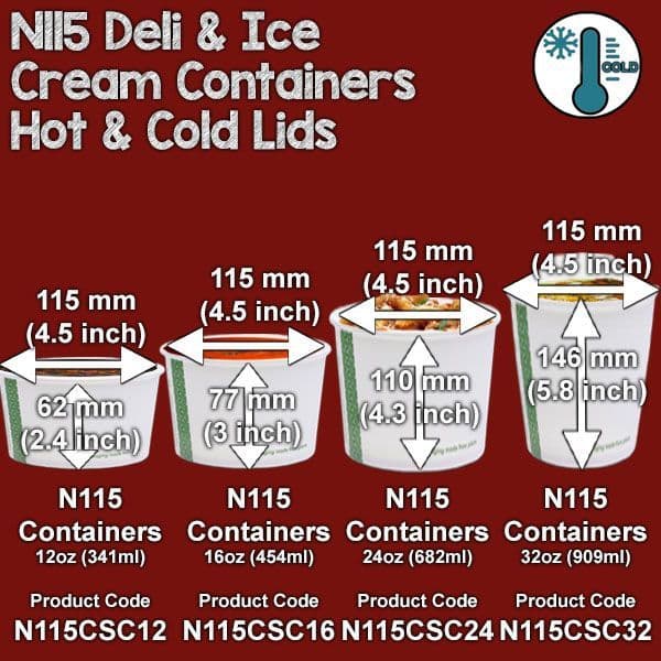 • Can be used with any of our soup and ice cream containers N115 containers (115mm diameter).