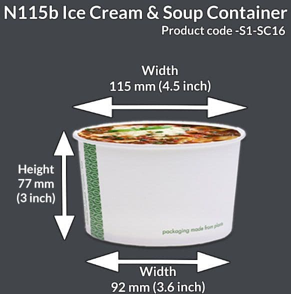 N115 Enviroware Compostable Soup & Ice Cream Container & Lids 16oz
