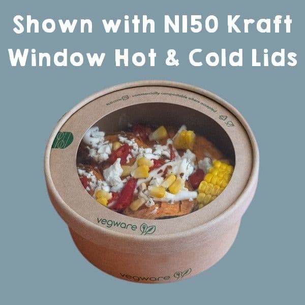 N150 Cardboard Biodegradable Compostable Hot & Cold Food Bowl Lids 150mm x 50