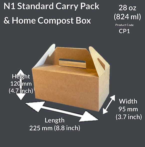N2 Cardboard Biodegradable Compostable Carry Pack Food Box 63oz x 125