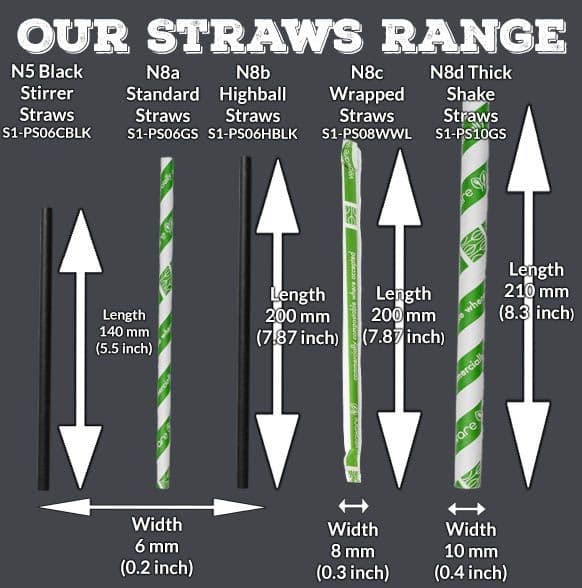 N1 Standard Biodegradable Compostable Highball Cocktail Straws 6mm (Pack of 250)