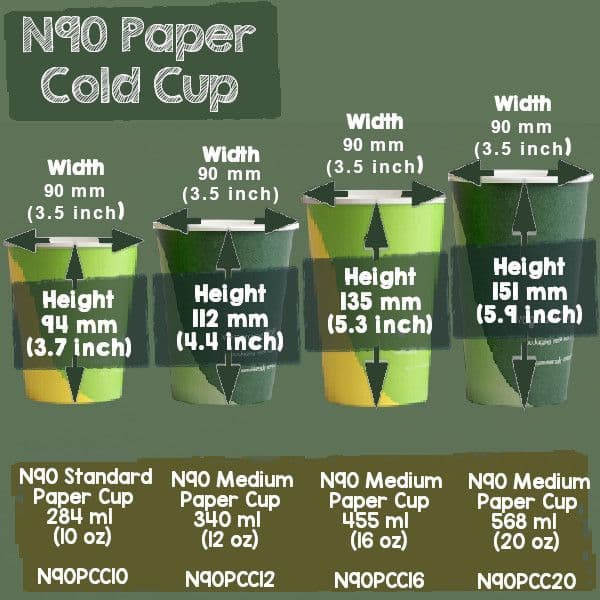 N90 Paper Biodegradable Compostable Disposable Cold Food & Drink Cups (Box of 1000)