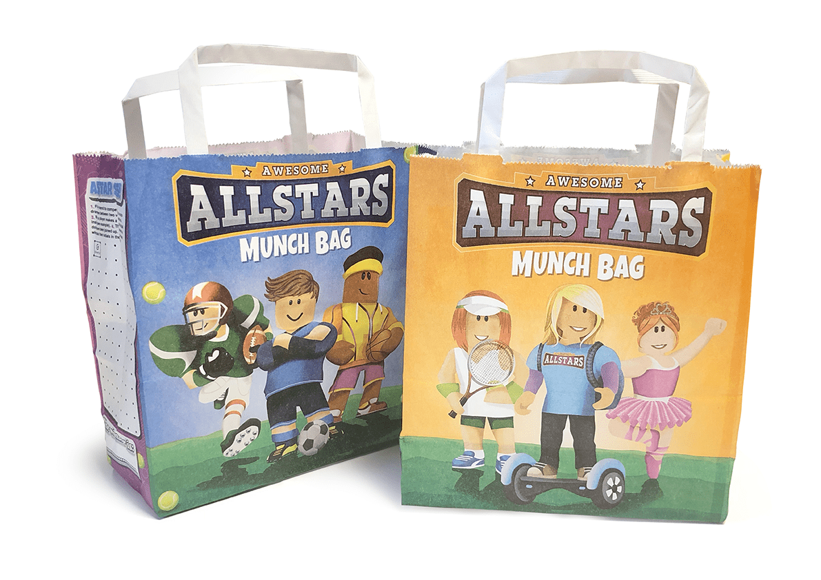 • Packs of 10 to 100 bags and crayons.