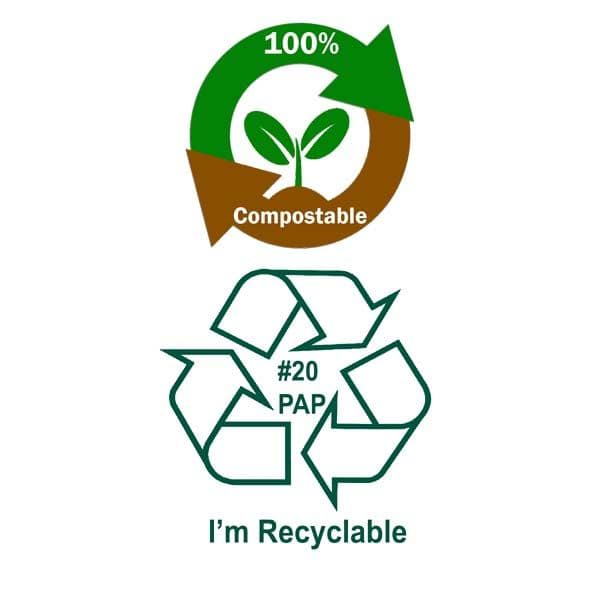 • Certified as compostable and ethically sourced to Feed a Field™ standards.